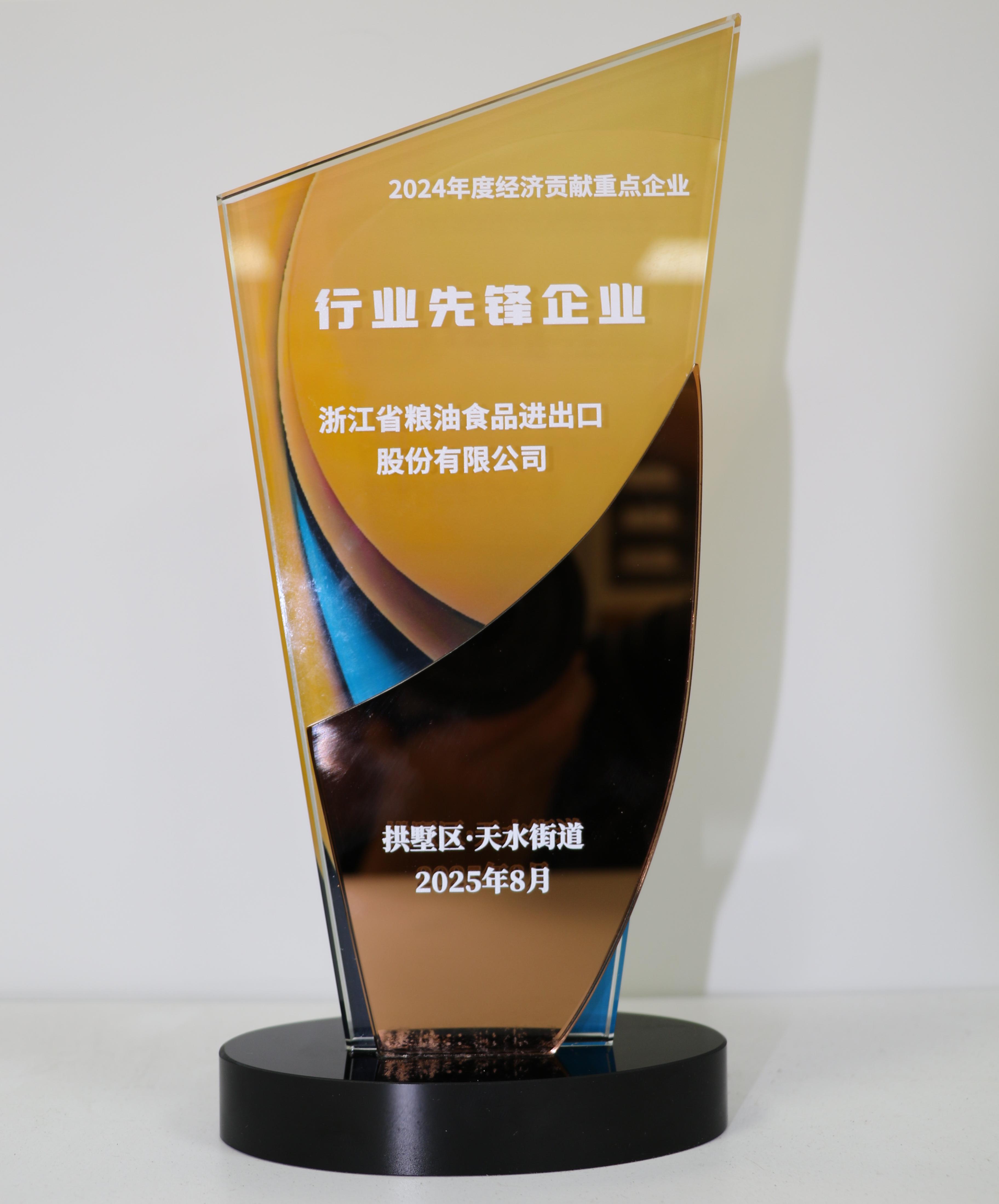 喜报 | 浙江粮油获评天水街道2024年度经济贡献“行业先锋企业”荣誉称号